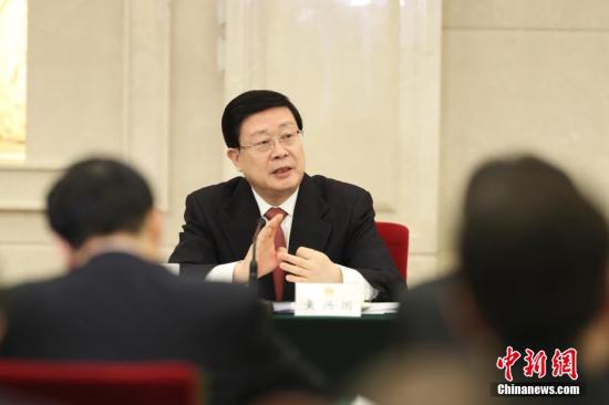 3月8日,十二届全国人大四次会议天津代表团在北京人民大会堂举行全体会议并对媒体开放,天津市委代理书记、市长黄兴国回答记者提问。中新社记者 盛佳鹏 摄