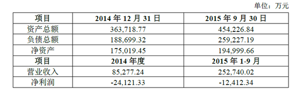 2014年12月31日及2015年9月30日,北汽新能源的资产及经营情况如下: