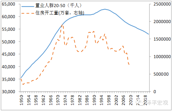 图3 日本置业人群(20-50)和住房开工量