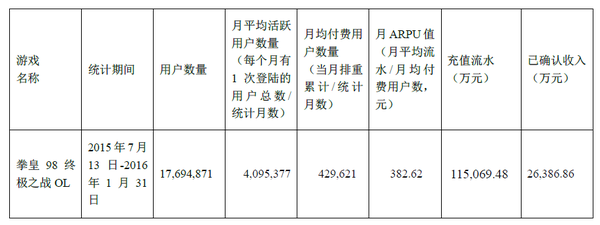 截至2016年1月31日,该游戏产品累计已实现收入首次达到公司最近一个会计年度经审计营业收入(2014年度经审计营业收入)的30%。该游戏产品具体情况如下: