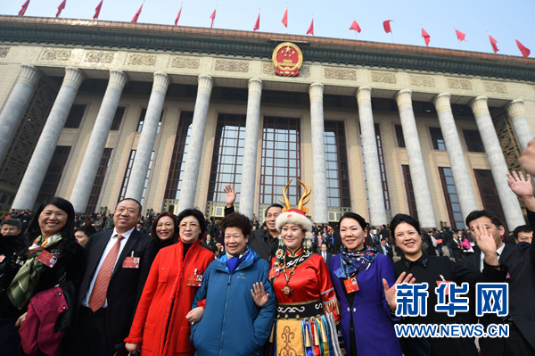 3月16日,第十二届全国人民代表大会第四次会议闭幕会后,代表走出人民大会堂。 新华社记者 潘昱龙 摄