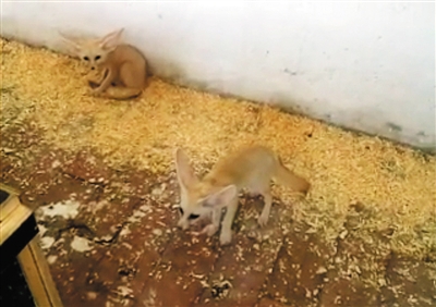 昨日下午2时许,老水碓子花鸟虫鱼市场内,一商家向记者展示拍摄有三只耳廓狐的小视频。视频截图