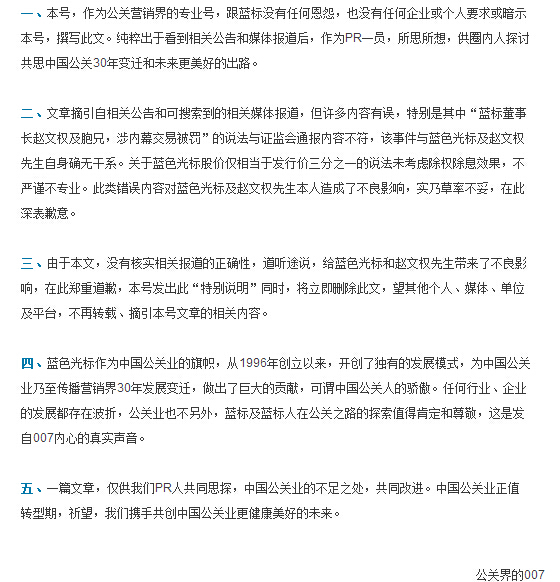 截至目前,原文作者已经删除不实文章,并向公司及董事长个人正式道歉。