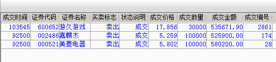 集合出掉美菱电器和嘉麟杰后,看到游久游戏低开不少,就没着急出掉,但是盘中拉升力度太弱,再加上考虑大盘下午有下跌风险,就在均价附近全部卖出了。