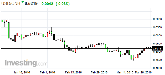 考虑到高层近期的表态,人民币再次出现急贬的可能性比较小。中国国务院总理李克强在博鳌亚洲论坛上也称,人民币会在合理均衡水平上保持基本稳定,中国绝不会用贬值刺激出口。