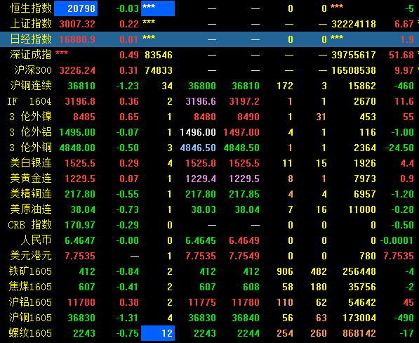 中午收盘,沪指涨0.36%,收市前15分钟拉升0.5%,对应成交降至109亿元;上午振幅0.7%,报3011,日成交同比略增至1421亿元。港口股仍领涨两市,大连港居首;电信、物流、旅游、传媒等二线蓝筹跟涨;午盘阶段,上午调整的钢铁、有色、券商、酿酒翻红。目前保险、银行、煤炭、石油、迪士尼翻绿。期指方面总体低调,IF1604拉升意愿相对较强。今日为3月和1季度收官日,面对3000附近强压,沪指上演2016年来少见的早、午盘。