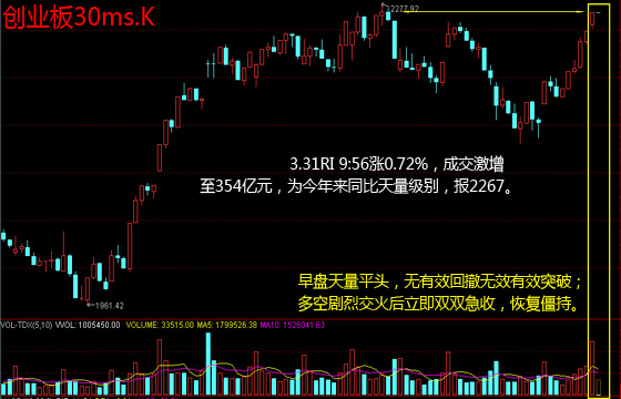 9:56,创业板涨0.72%,成交激增至354亿元,为今年来同比天量级别,报2267,次新股、职业教育、电商概念领涨。