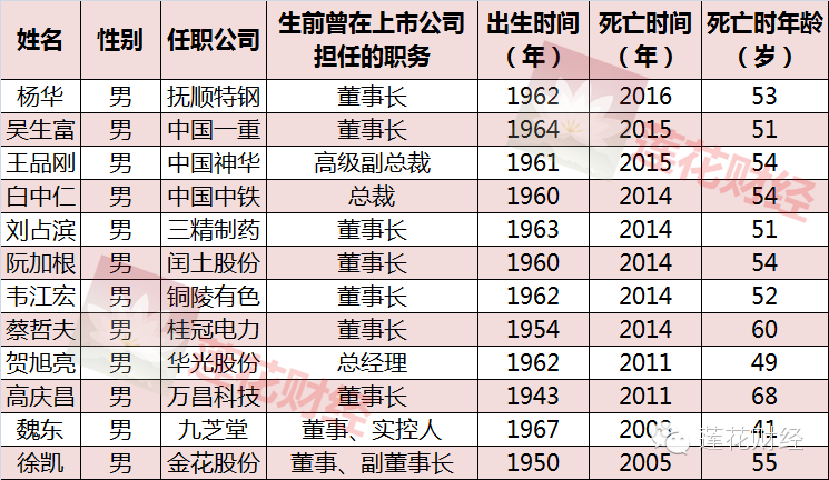 12位上市公司前高管非正常死亡报告:正处事业巅峰