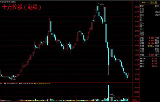 14:19,十方控股(港股)涨26.98%,报0.8港元;该股2月下旬创新高至3.75元,3月7日至昨日暴跌82%,今早盘一度上涨38%。
