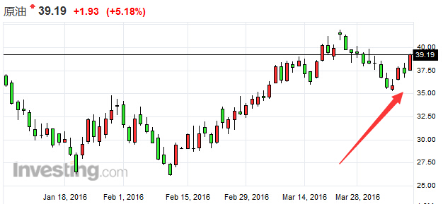 周五(4月8日),国际油价再次冲高,美原油5月期货一度涨逾5%刷新逾一周高点至39.17美元/桶,布伦特原油刷新逾一周高点至41.32美元/桶,因俄罗斯方面表态出冻结产量外还有其他选项,市场对产油国达成冻产协议的预期升温。