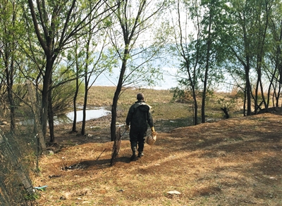 昨日,龙母山庄附近,村民到十三陵水库的放生点附近捕鱼。 新京报见习记者 曾金秋 摄