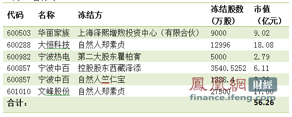 【导语】4月12日晚间5家公司陆续公布股份被轮候冻结,“徐翔系”投资平台持有的股份被轮候冻结,包括华丽家族、大恒科技、宁波中百、文峰股份等公司,合计市值高达56.26亿元。其中出现了三张新面孔,分别是宁波热电二股东瞿柏寅、宁波中百控股股东西藏泽添以及宁波中百自然人竺仁宝三张新面孔。如果你把握不准接下来的行情,抓不到牛股?快关注复盘大师(fupan588)!股民必读的操盘策略都在这里了。