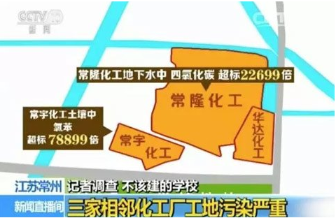 据央视报道,江苏常州外国语学校近500名学生出现身体异常,家长们把问题指向了学校北边的一片工地,据他们反映,这个地块上原来是三家化工厂,怀疑污染来自对土壤进行的开挖作业。这三家化工厂中,最大的化工厂就是常隆化工有限公司。