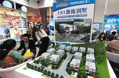 在北京举行的房展会上,美国独栋别墅学区房吸引观众咨询。图/视觉中国