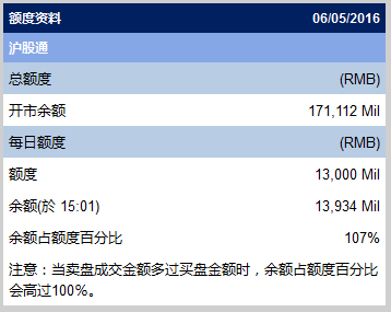 沪港通:沪股通昨日净流出1.85亿元,今天资金继续撤离A股市场,仍呈净流出状态,截止A股收市,沪股通今日剩余额度为139.34亿元,占比107%,净流入9.34亿元。连续两天共计净流出11.19亿元资金。