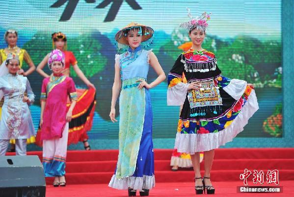 广西贫困县举行民族服饰T台秀 推广当地风情旅游