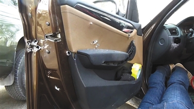 警方与绑架案嫌疑人发生枪战。疑犯被击毙,车门上留有多处弹孔。5月11日凌晨,大同警方在抓捕“5·10”特大绑架案疑犯过程中,当场击毙两名开枪拒捕的疑犯,人质被安全解救。现场缴获仿“五四式”手枪2支、弹夹4个、子弹31发。在抓捕现场,双方枪战持续了近20分钟,警方打出80余发子弹,双方互射约百枪。大同警方供图