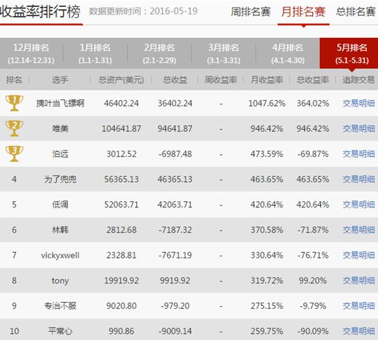 模拟大赛举办至今,已颁发5个月奖(共计35000美元)和22个周奖(共计22150美元),有的资深老手游刃有余几度折冠,有的新晋黑马也不甘示弱后来居上,竞争好不激烈!