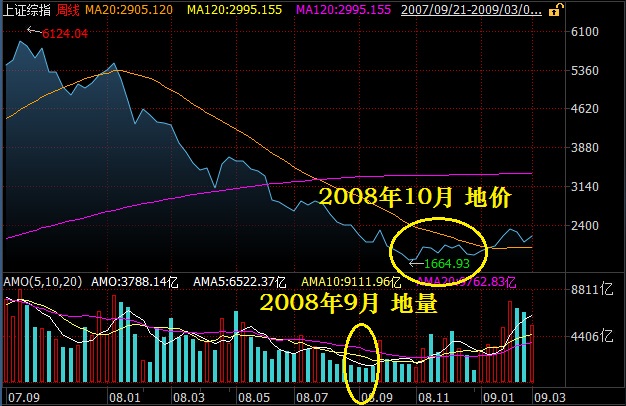 从见到“地量”后真正见到“地价”,上证指数从2008年8月14日至2008年10月28日两个月期间,再度下跌了近30%。