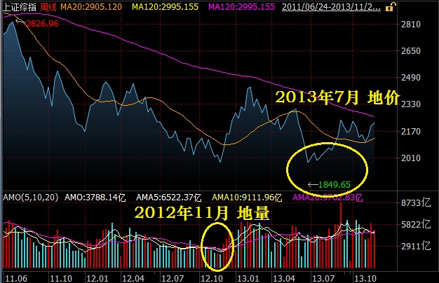 2010年11月11日,上证指数阶段见顶后一路震荡走低,直到2012年12月4日才见到1949.46点的“解放底”,其成交额一度萎缩至331.8亿元,不足顶峰时期的九分之一。不过此“解放底”还并非真正的历史大底。股指反弹仅维持了2个月,便再度下跌,直到2013年6月才见到了由“钱荒”利空导致的“黄金坑”。期间上证指数从见地量到见底部,用时7个月。