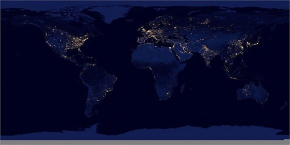美国国家航空航天局(NASA)发布的世界各大城市航拍夜景图。