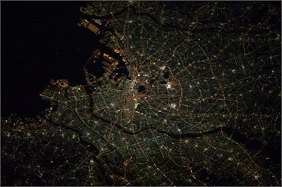 美国国家航空航天局(NASA)发布的东京航拍夜景图。