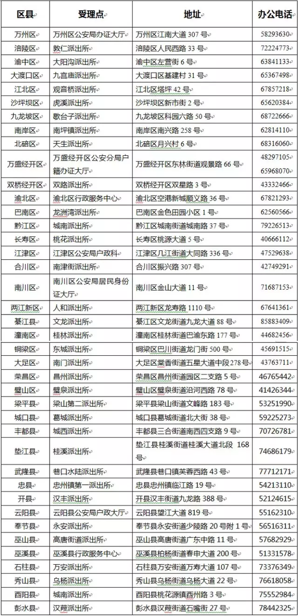 据了解,为最大限度地方便外省市户籍群众就近办理身份证换领、补领业务,重庆在原有主城10个受理点不变的基础上,在其余区县增设了31个跨省异地受理点,从而实现了全市所有区县内居民身份证跨省异地受理服务全覆盖。