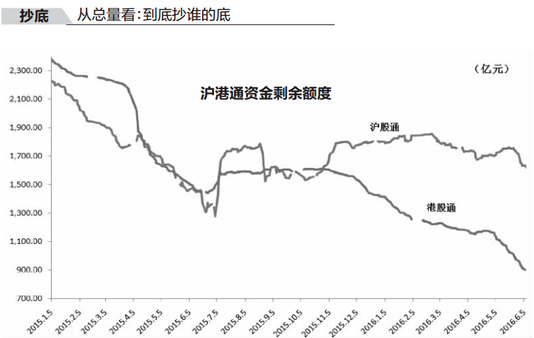 是不是抄底,用数据来直观审视。如上图,代表沪股通剩余额度的的曲线,在很长一段时间内都比较平滑,并不能看出“抄底”二字。