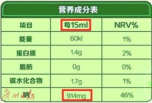 在电商平台,贴上“儿童”标签的酱油价格平均为普通酱油的2.5倍。营养成分表中,部分儿童酱油钠含量竟比普通酱油含量还要高,一些厂商还用障眼法,在标签上动手脚:乍一看儿童酱油每份中钠含量比普通酱油中的钠含量低很多,但其实,成人酱油的成分是按照一份15毫升算的,而儿童酱油是按照10毫升算。