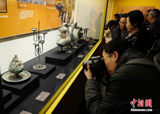 3月2日,《五色炫曜——南昌汉代海昏侯国考古成果展》在北京首都博物馆开展。在展厅中,几乎每组(件)文物前都围满了观众,甚至有七旬老人和十来岁的孩子。 中新社记者 侯宇 摄