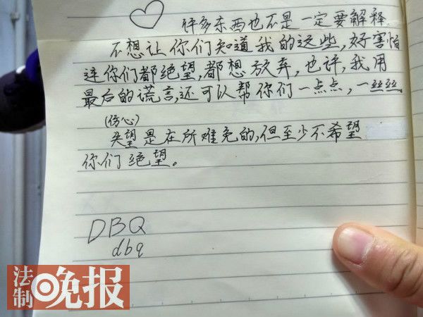 法晚(微信公号ID:fzwb_52165216)记者了解到,女孩小郭在日记本上留下的遗书中,充满了死亡、忏悔、结束等字眼。女孩的心愿是改名吕静曦