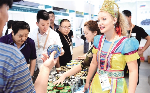日前,第四届中国国际新材料产业博览会和第二十七届哈尔滨国际经济贸易洽谈会在哈尔滨“合璧”启幕。展会上,来自俄罗斯、巴基斯坦等国家和地区的参展商积极融入中国经贸,进一步打造“一带一路”国际化、市场化和专业化的开放平台。图为与会者在俄罗斯展位了解情况。(新华社发)
