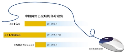 据新京报记者统计,在已确定完成的融资中,2014年7月,中搜网络完成定增融资1亿元,2015年1月7日,中搜网络融资1.998亿元。