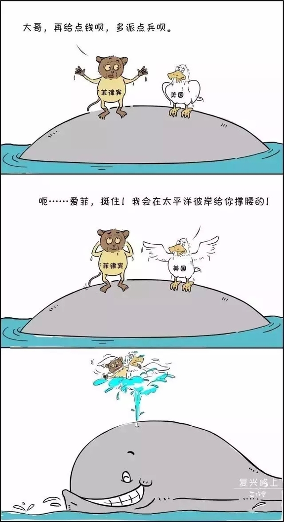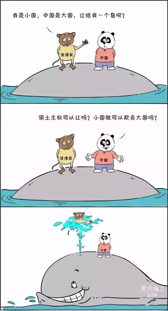 菲律宾说“我是小国我有理”,中国说“别耍无赖,谁有主权谁有理!” 国际公众和舆论的大鲸鱼表示从未见过如此厚颜无耻之人,果断“喷”了。