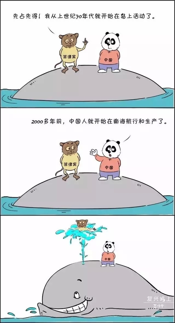 菲律宾百折不挠:我们70年代就上岛了。中国表示:呵呵,我们2000多年前就在南海混了。 国际公众和舆论的大鲸鱼表示已经无力吐槽,“喷”了!