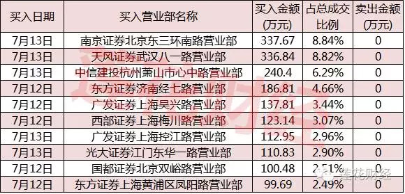 7月13日,国信证券郑州商务内环路营业部也成功出逃353.7万元,出逃股数为30万股。