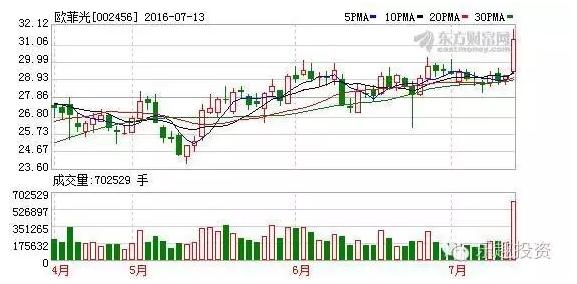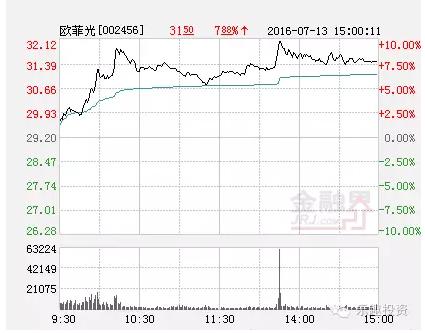 图2 : 7月13日,欧菲光放量走强,盘中一度触及涨停