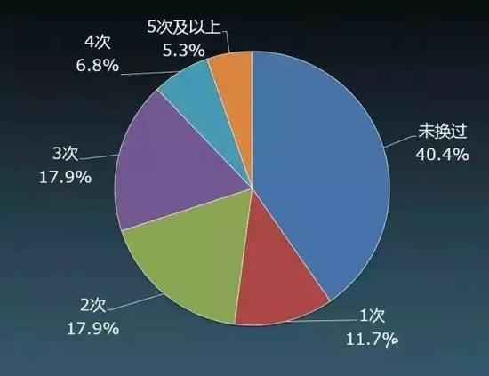 调查中有超过4成人从未换过工作,换1-2次的近3成。