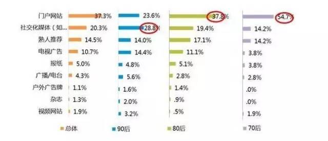 门户网站、社交媒体是80后接触理财信息较为信赖的渠道