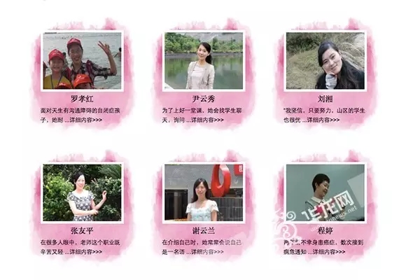 活动自3月4日启动,3月8日华龙网推出“寻访最美女教师”专题页面截至6月上旬共讲述了84位最美女教师的“美丽故事”。