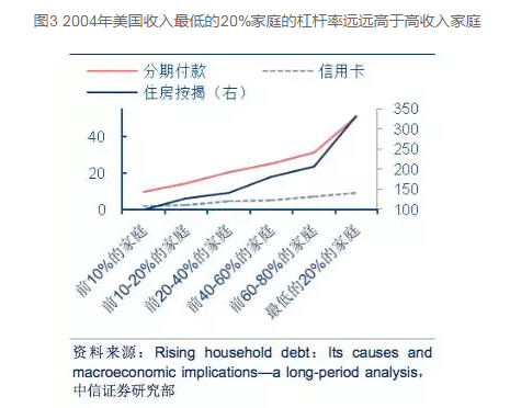 不加区分地鼓励家庭加杠杆,更多的将是推升中低收入家庭的杠杆率,增加金融风险,2003年韩国的信用卡危机即是一例。国际经验显示,居民加杠杆的主要投向是房地产,在泡沫的后期,杠杆往往加在低收入阶层。同时,地产价格上升加剧财富分化,尤其是中国城乡二元分化的背景下,更加抑制消费。