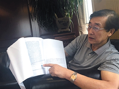 张明杰的辩护律师在接受记者采访时,出示与检方卷宗不同的被告人供述。新京报记者 王巍 摄