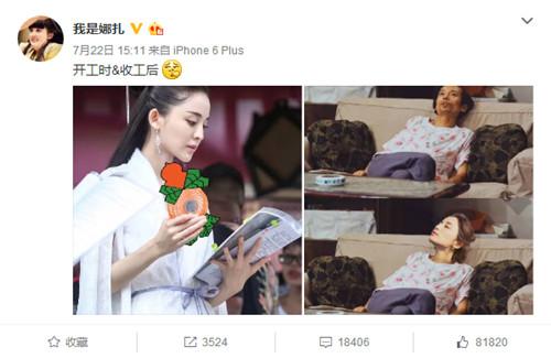 近日,娜扎配图调侃工作前后状态不同的微博引来网友围观。娜扎放上了最近火遍网络的“葛优瘫”和P上自己的对比图。借这两张配图,把自己开工时和收工后的日常状态表现得淋漓尽致:从优雅古装美女秒变为“横店瘫”休息的女汉子!