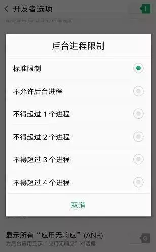 操作方法:受保护的后台应用设置-高级设置-开发人员选项-后台进程限制,根据需要选择限制数量即可。