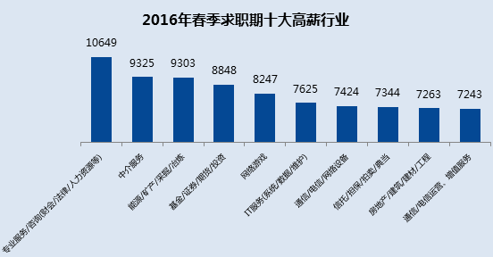 看完夏季十大高薪行业,我们再来回顾下2016年春季十大高薪行业: