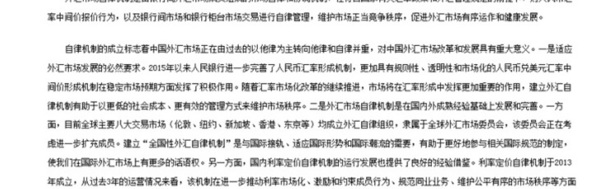 新闻稿显示:“自律机制的成立标志着中国外汇市场正在由过去的以他律为主转向他律和自律并重,对中国外汇市场改革和发展具有重大意义。”