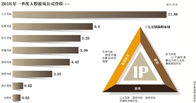 从2015年财报以及2016年一季度财报来看,三七互娱的财务表现十分醒目。在A股的全部8家上市网络游戏类公司中,三七互娱营收领跑,达到了11.87亿元,净利润为2.11亿元。相比,营收排名第二位的恺英网络营收则为6.23亿元,净利润为1.02亿元。