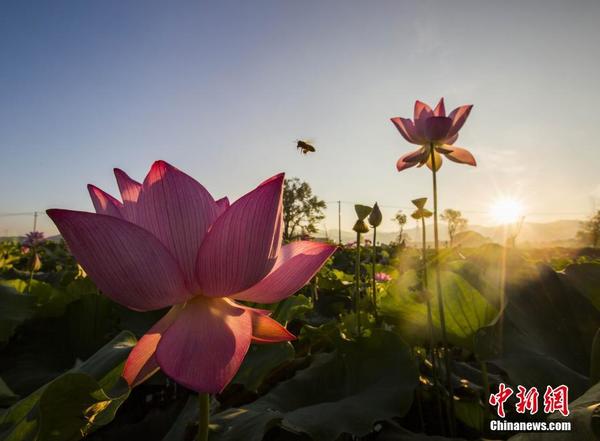 立秋过后,8月12日,江西都昌县蔡岭镇200余亩荷花绚丽绽放,亭亭玉立,淡淡的清香沁人心脾,呈现出风雅别致的美景。 傅建斌 摄