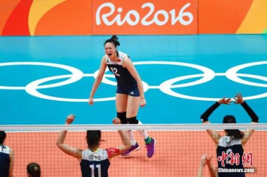 当地时间8月18日,2016里约奥运会女排半决赛,中国队3:1战胜荷兰队晋级决赛。这是中国女排时隔12年再次进入奥运决赛。中新网记者 富田 摄