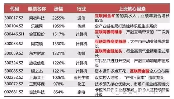 五年期情况如下,产融互动和业绩高增长是最主要的两大因素,其中互联网相关公司占据半壁江山。